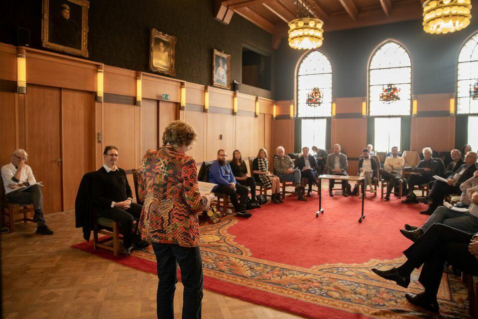 Tot slot maakt het uit of een groepslid specialist is op een deel van de groeicurve, of juist van nature het totaal overziet, dus van ontstaan via doorgroeien, uitnutten en vervallen naar afbreken. Bij een transitie spelen al deze processen tegelijk. De TilburgerTafel moest wat ons betreft dus variatie hebben in 1) explorerende en bestendigende karakters, 2) mens- en inhoud-georiënteerde karakters en 3) specialisten op de groeicurve en generalisten. Literatuur over complexe-probleemoplossing maakt aannemelijk dat zo’n cognitief-gevarieerde groep sneller en beter resultaat levert[2]. Uit zestig aanmeldingen vormden we een stadsdekkende groep van twintig. Met speelse kennismakingsvragen checkten we die bij aanvang op cognitieve diversiteit. Jarenlange ervaring met transitie-assessments is op zo’n moment een voordeel.