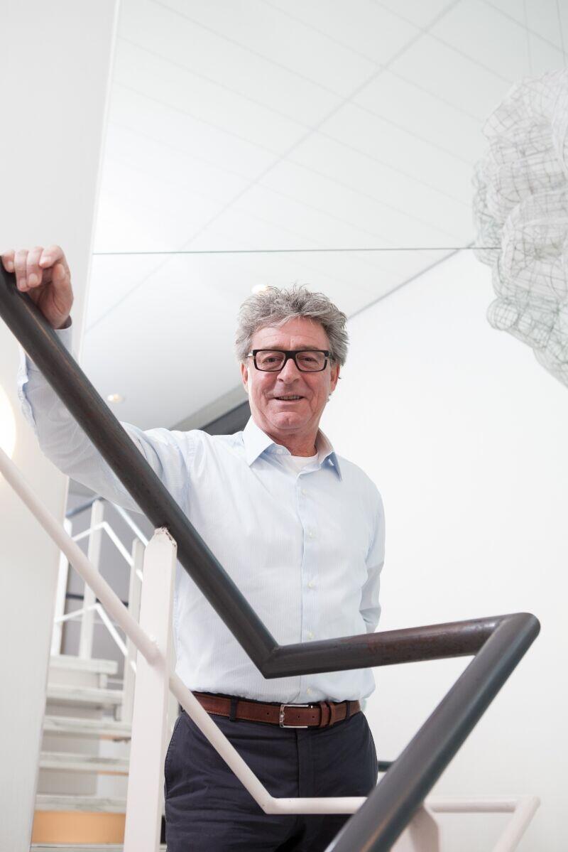 maar vooral met veel elan. Hij is in zijn element in het kantoorpand van