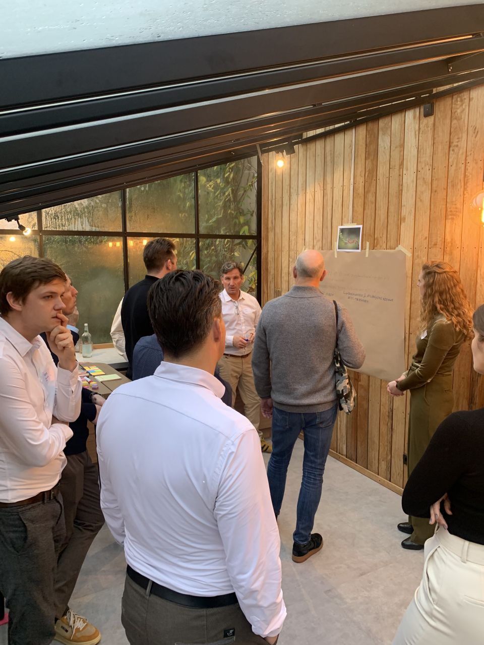 Na een korte kennismaking werd de deelnemers gevraagd om in tweetallen drie kernwaarden op te schrijven voor circulariteit. Vervolgens vertelde Thijs Dolders over de locatie van deze mooie middag: Inspyrium bij Boomkwekerij Ebben. Om een goede indruk te krijgen van alle duurzame items werden de jassen aangetrokken om een rondje te lopen over de duurzame daktuin.