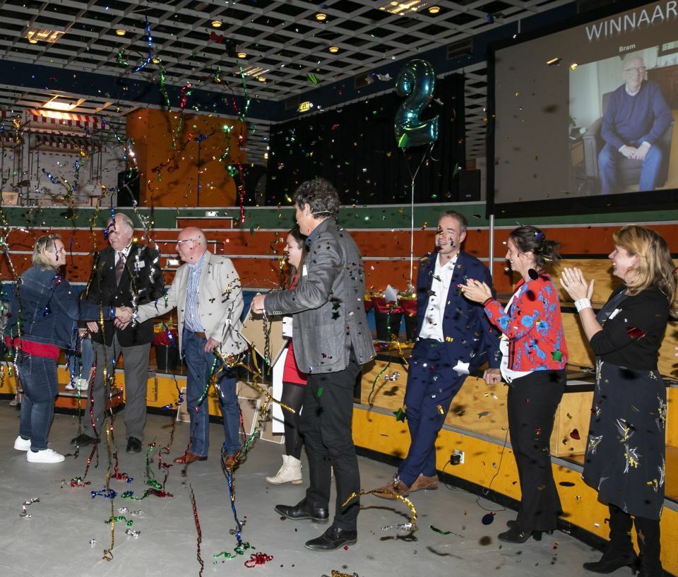 Als winnaar kreeg Bram een cheque waarmee hij samen met zijn medebewoners een nieuwe combimagnetron uit mag zoeken voor in de ontmoetingsruimte in de buurt.