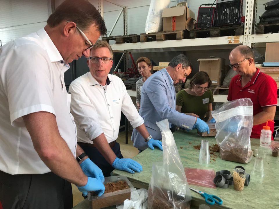 Deze laatste deelsessie is een mooi voorbeeld van waarom de SPARK Campus een mooie locatie is voor een thema als circulariteit. In het Mycelium Lab wordt namelijk geëxperimenteerd met het bouwen met schimmels, die groeien op restproducten uit de landbouw. De deelnemers in deze sessie gaan dan ook zelf aan de slag en krijgen aan het einde hun eigen bekertje mee naar huis. Als ze het bekertje in het licht zetten zullen er champignons uit groeien, als ze het bekertje echter in het donker zetten wordt het een harde substantie. Wanneer ze dit vervolgens in de oven zetten gaan de schimmels dood en ontstaat er een echt ‘bouwblok’. Met dit soort dingen laat SPARK zien een plek te zijn voor innovatie in de bouw.