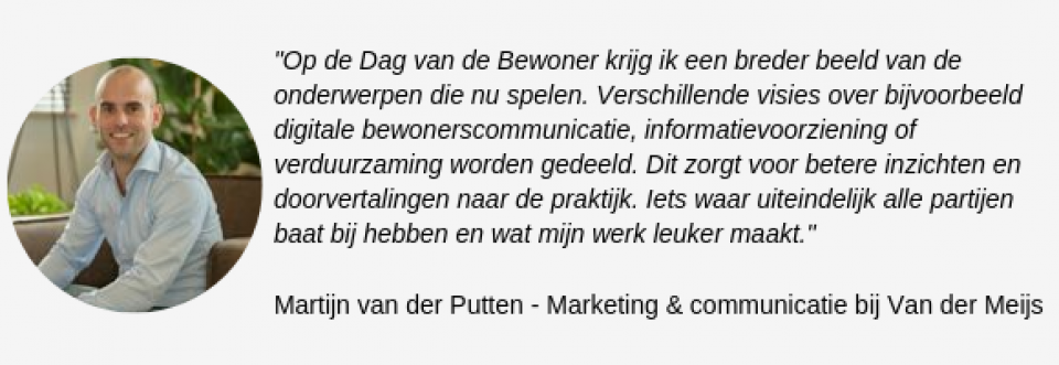Op de Dag van de Bewoner daagt gedragsdeskundige Niels Götz je in de sessie van Brink Climate Systems uit een kijkje te nemen in het brein van de huurder. Daarnaast vertelt woningcorporatie Mitros over hun 100% Gezond Wonen Challenge, die onderhoudsbedrijven en leveranciers prikkelt om op een andere manier na te denken over de behoeftes van huurders.