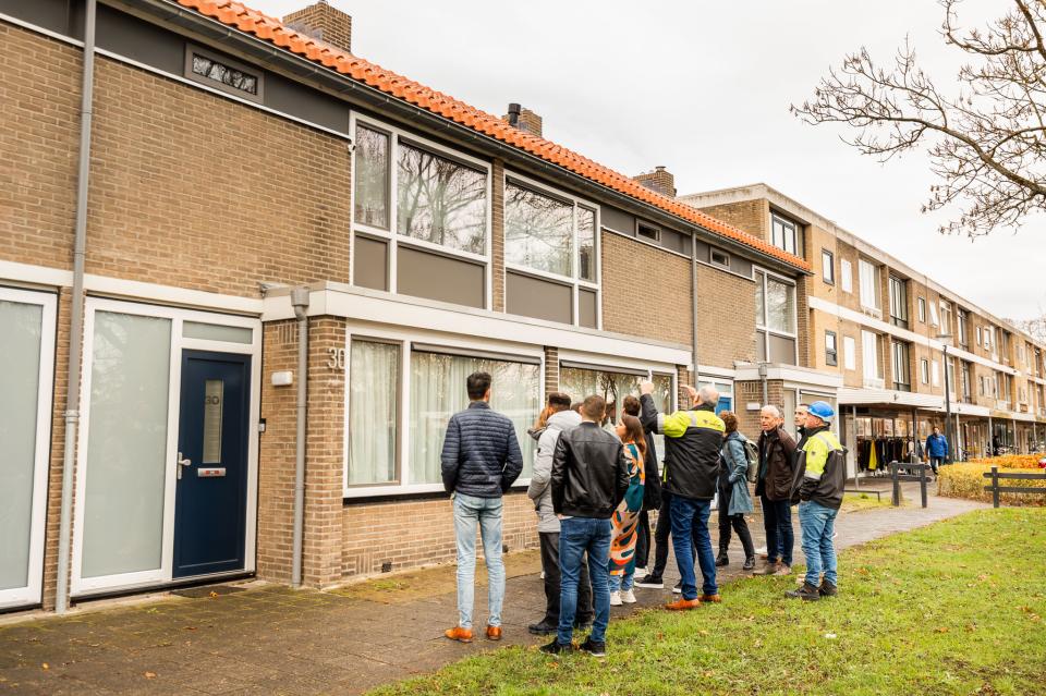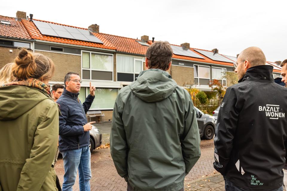 In opdracht van corporatie WonenBreburg verduurzaamt Hazenberg de wijk Brabantpark met gespikkeld bezit. Renda en Hazenberg organiseerden deze bijeenkomst. We begonnen met een aftrap door Bas Cremers, projectleider bij Hazenberg. Daarna gingen we de wijk in. Lopend langs 184 huurwoningen en 214 koopwoningen voelden we wat gespikkeld bezit betekent: verspringende daken, goten die niet lekker doorlopen, voegwerk dat niet overal strak is, kozijnen die geen eenheid vormen, schoorstenen die nog meegenomen moeten worden. Het werd tastbaar.