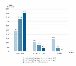 Het was ‘breaking news’ bij de start van het schooljaar: ventileren is een prioriteit om het risico op verspreiding van het Covid-19 virus via de lucht in druk bevolkte klassen tot een minimum te beperken. Ramen en deuren wagenwijd open dus, zodat er constant verse lucht beschikbaar is en gezonde binnenlucht het virus geen kans laat. En dat werpt z’n vruchten af. Renson rustte eind augustus bij wijze van pilootproject een 10-tal Belgische scholen uit met de Sense. En uit die meetresultaten blijkt dat met de ramen en deuren open zelfs in klassen zonder ventilatiesysteem het CO2-gehalte amper 7,7% van de totale tijd boven de 1200 ppm stijgt. Toen eerder (lees: voor de heropstart op 1 september) ramen en deuren in diezelfde klassen nog hoofdzakelijk dicht bleven, bleek dat nog 29,9% van de tijd het geval te zijn.